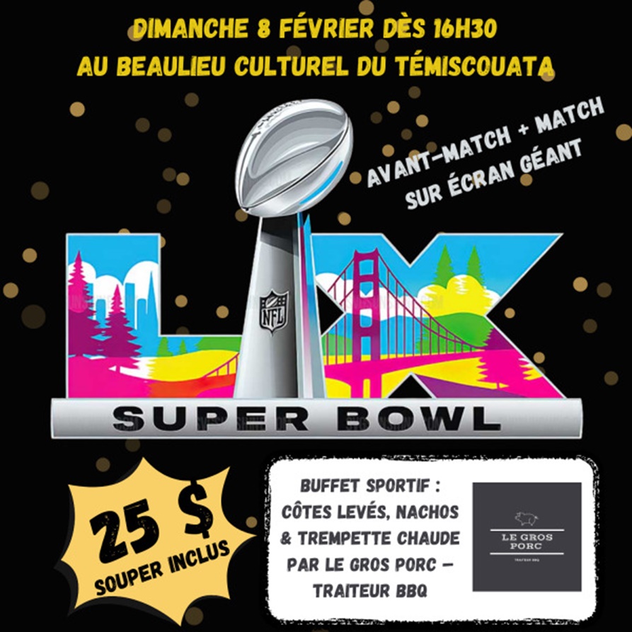 Soirée Super Bowl – avant-match et diffusion sur écran géant au BeauLieu Culturel du Témiscouata.